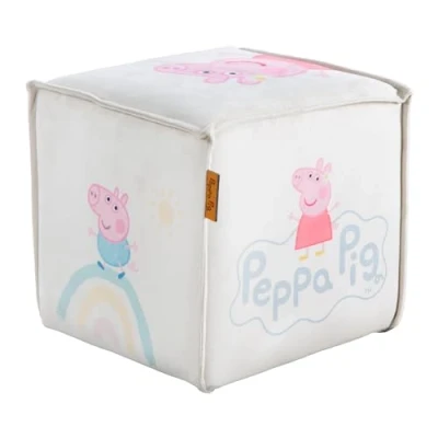 COLORFUL SEATING FURNITURE: Padded stool in Peppa Pig design featuring Peppa Pig, Brother George, a sun, and a rainbow - Stylish children's stool that invites children to play and sit COMFORTABLE AND SAFE UPHOLSTERED STOOL: Ideal for children from 18 months for sitting and playing - Sturdy seating with soft padding, decorative stitching, and modern print CHILD-FRIENDLY HEIGHT: Perfect seat height of 25 cm for small and larger children - Suitable for boys and girls - Comfortable sitting experience with the plush velvet cover CHILDREN'S STOOL IN PEPPA PIG DESIGN: Lovely motif from the popular animated series - Print with Peppa Pig and decorative elements - Perfect gift for children for birthdays, Easter, or Christmas SPECIFICATIONS: Dimensions: H 25 x W 27 x D 27 cm - Age range: from 18 months - Load capacity: up to 60 kg - Meets current safety requirements - Perfect for little fans of the popular animated series 'Peppa Pig'