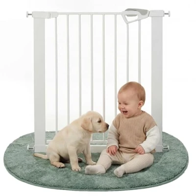 Reliable Everyday Protection: TÜV-certified metal safety gate for doors, stairs, and passageways. The base model fits openings from 75–82 cm (including clamping screws) and creates secure boundaries in any home Individually Extendable: Can be flexibly adjusted up to 110 cm with separately available extensions (7 cm: Item No. 215949WE, 14 cm: Item No. 215950WE). Compatible with Y-spindles (Item No. 215951SI) for round stair banisters Safe & High-Quality: TÜV-certified to EN 1930:2011, safe for children from 0–24 months. Made of powder-coated metal with robust construction for reliable everyday use Thoughtful Extras: Features a traffic-light lock indicator for visual closure control, automatic closing mechanism, 90° stop function, and convenient one-hand operation for secure, easy handling Flexible Installation: Pressure-mounted for drill-free setup—ideal for rental apartments—or screw-mounted for a permanent, extra-stable fit. Quick, secure installation suited to many home environments