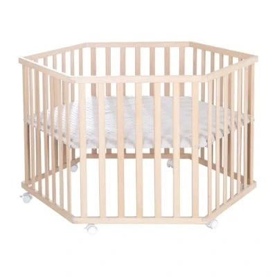 roba Hexagonal Playpen + Protective Insert 'Lil Planet' Grey Play Yard Made of Beech Wood Height Adjustable Solid