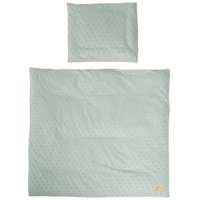 SET OF TWO PIECES: this bedding set includes an 80 x 80 cm duvet cover and a 40 x 35 cm pillow case, both very soft to the touch HIGH-QUALITY ORGANIC JERSEY: the "Lil Planet" bed linen set is made from high-quality, durable organic jersey that retains its shape and softness even after several washes BREATHABLE AND EXTRA SOFT: the duvet cover and pillowcase for babies are very pleasant to the touch and have good air permeability, which prevents overheating OEKO-TEX AND GOTS CERTIFIED: the cot linen carries the OEKO-TEX Standard 100 and GOTS labels, and is certified free of toxic substances to respect the sensitive skin of toddlers CARE AND COMPOSITION: this bed linen set is machine washable at 40°C in an ecological manner and can be tumble dried; Materials: Organic jersey with polka dots Terry 80% organic cotton, 20% polyester; colour: frosty green