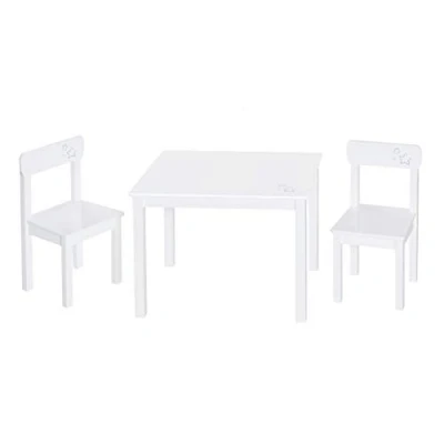 The white roba play table and chairs made of MDF is the ideal seating height for children aged 18 months to 10 years The modern seating grou pincludes a children's table and two matching chairs with star print Your offspring can sit comfortably at the table, eat, play and do handicrafts at the pretty roba children's seating group from an early age All children's furniture from roba is developed in Germany according to the latest safety standards. The easy-to-assemble chairs can support up to 50 kg, the table up to 30 kg The materials used in the seating group are non-toxic, high-quality, sturde, easy-care and certified. Additionally, they are regularly tested during production