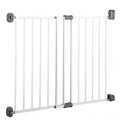 The roba baby gate has a variable width of 77–86cm and can safely and securely be mounted in door frames, stair posts and walls without screws For mounting in door frames with internal dimensions of 60-97cm and between walls with a space of 60-84.5cm. Also suitable for use between stair posts Easy to open on both sides with a single movement, yet the secure lock closure prevents your toddler from opening it and protects them from household hazards Perfect safety gate for children and pets in everyday life, developed and produced according to the current safety standard EN 1930:2011 All materials used are non-toxic and certified. The surfaces can be wiped with a damp cloth and easy-care