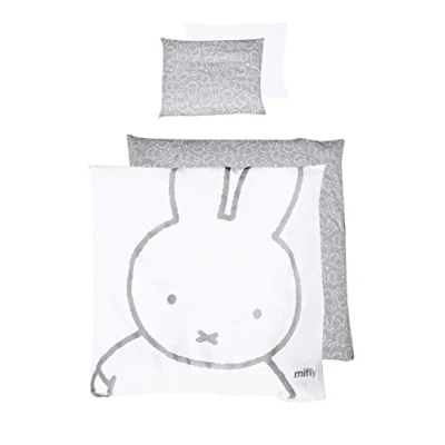roba miffy Baby Bed Linen 80 x cm 2 Piece Bedding Set Rabbit Motif Reversible Cotton Duvet Cover and Pillowcase 40 35 White/Grey