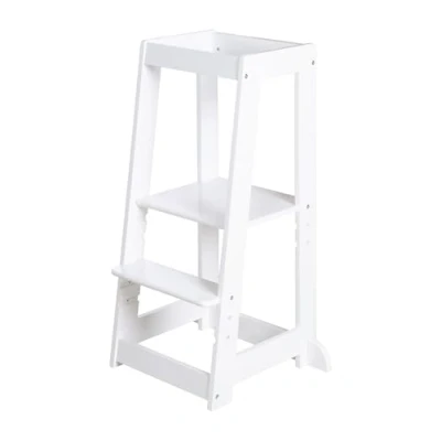 LEARNING TOWER MADE OF WOOD: The ideal learning companion for your child - Enables active participation in daily activities - Height-adjustable stool with 3 levels and multifunctional use - Wood painted in white ADJUSTABLE KITCHEN HELPER: Height-adjustable footboard at the following levels: 17.5 cm, 22.5 cm, and 27.5 cm - Adjustable standing platform at the following heights: 34.5 cm, 39.5 cm, and 44.5 cm - Side reinforcements for added stability MONTESSORI-INSPIRED DESIGN: The roba learning tower promotes independence and curiosity - Supports the development of motor, social, and communication skills SUSTAINABLE FSC WOOD: Certified, pollutant-tested, and antibacterial material - Child-friendly design with rounded edges and corners - Painted in elegant white SPECIFICATIONS: Easy and hassle-free assembly - Load capacity up to 80 kg - Dimensions: H 88 x W 54 x D 43.5 cm - Material: FSC-certified wood, painted - Age range: From 12 months to approx. 5 years