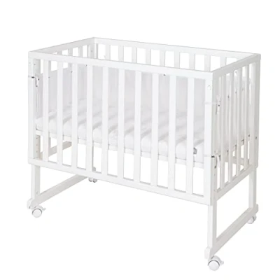 MULTIFUNCTIONAL 3 IN 1 BED: bedside crib, bassinet and children’s bench in one – taupe-colored lacquered wood – optimal and safe sleeping environment COMPLETE SET: incl. high-quality baby mattress 45 x 90 cm, “roba Style” bumper, safety barrier and 4 removable castors HEIGHT-ADJUSTABLE: adjustable up to any bed height incl. box spring beds – easy and secure attachment to parent bed MOBILE FUNCTION: converts into a mobile bassinet at the push of a button – grows from birth to children’s bench SAFETY TESTED: developed in Germany according to EN 1130:2019 – all materials tested for harmful substances and certified