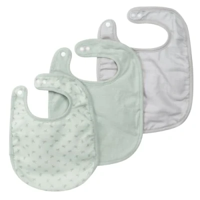 roba Set of 3 Lil Planet Organic Cotton Adjustable Baby Bibs 23 x 30 cm GOTS and Oeko TEX Certified Button Down Green/Grey