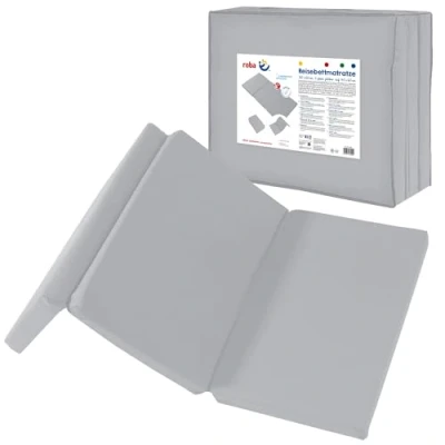 PERFECT FIT: The roba travel cot mattress from the 'roba Style' collection in silver grey measures 60 x 120 cm and fits all standard travel and baby beds, offering optimal lying comfort both at home and on the go HIGH SLEEPING COMFORT: The tested and high-quality PU foam core with a height of 5.5 cm provides a comfortable lying surface and ensures restful and comfortable sleep for babies from birth PRACTICAL & COMPACT: The mattress can be folded compactly to 40 x 60 cm for travel and on the go and stored hygienically in the included, dust-proof carrying bag – ideal for flexible use and easy transport HYGIENIC & EASY TO CLEAN: The soft and cozy microfiber cover is particularly skin-friendly, breathable, and durable. Thanks to the zipper, it can be easily removed and washed at 30°C VERSATILE USE: The mattress is not only suitable as a comfortable sleeping pad in the travel cot but can also be used in the children's room as a comfortable play mattress – perfect for spontaneous overnight guests