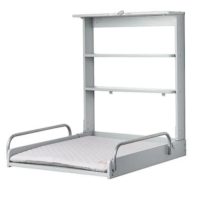MODERN DESIGN: roba wall-mounted changing shelf made of taupe-lacquered wood with changing mat in trendy “roba Style grey” design – 2 practical storage compartments – flexibly foldable – space-saving changing solution for baby and children’s rooms. SAFE CHANGING AREA: Safe opening and closing of the changing surface thanks to lightly spring-loaded shock absorbers – side safety rails as barriers – load capacity up to 15 kg – produced according to current safety standard EN 12221-2:2008+A1:2013. FLEXIBLE CHANGING HEIGHT: The wall-mounted changing table can be installed at your preferred individual height – easy to close thanks to sliding lock – well-designed wall-mounted changing solution. EASY-CARE CHANGING MAT: Water- and dirt-repellent mat – 100% PVC- and phthalate-free – changing mat material: microfiber – filling: polyester fleece – materials tested for harmful substances and certified. PRACTICAL DIMENSIONS: Dimensions of the changing shelf (H x W x D): 78 x 67 x 76.5 / 19 cm – foldable changing table with a changing surface of 75 x 59.5 cm – height of safety rails: 14 cm.
