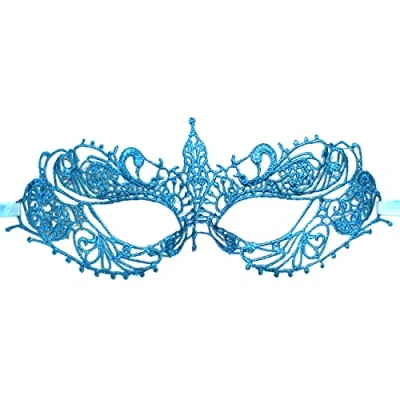 Robelli Lace Masquerade Halloween Carnival Party Eye Mask (Baby Blue)