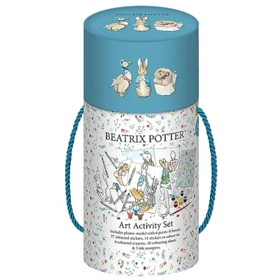 ENCOURAGE CREATIVITY: Encourage your budding young artist with this bumper art activity set featuring beloved characters from Beatrix Potter. Children will love choosing from the selection of coloured paints and crayons. WHAT’S INCLUDED IN THE SET: This art activity set comes with a Peter Rabbit plaster model for you to paint, 6 coloured paints, paint brush, 10 colouring sheets, 6 crayons, 3 ink stampers and lots of fun stickers. PAINT, DRAW, STICK AND COLOUR: Let your child’s imagination run free and see what they can create with this art kit. All the pieces are safety tested and suitable for children. COMPACT AND PORTABLE: The art activity set comes in a handy compact tube with a rope carry handle so it’s easy to keep all the pieces safe and together. CREATIVE AND MINDFUL: Encourage creative screen-free time for children by promoting imaginative skills with drawing and colouring.