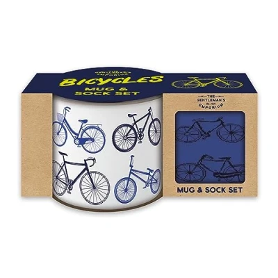 Robert Frederick Gentleman’s Emporium Enamel Bicycles Mug and Sock Set Gift for Cycling Enthusiasts
