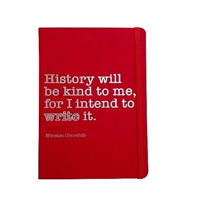 INSPIRE CREATIVITY: Feel motivated and inspired by the famous Winston Churchill quote which is featured on the front of this beautiful premium soft-touch notebook journal. HANDY LINED PAGES: This A5 notebook comes with 192 pre-lined pages making it a great choice for journaling or using at school or the office. There is also a handy document pocket on the inside back cover. STYLISH DESIGN FEATURES: The journal is a handy A5 size and comes with a ribbon marker plus matching coloured elastic closure to keep your important notes safe and organised. The cover is soft-touch, and the quote is embossed for a premium finish. MAKES A BEAUTIFUL GIFT: The unusual design featuring famous inspirational quotes embossed on the soft-touch cover make this journal the perfect gift for any stationery lover as well as an excellent gift for fans of history. DESIGNED TO LAST: The journal is designed with a hard-cased cover so it will keep your important notes safe and undamaged.
