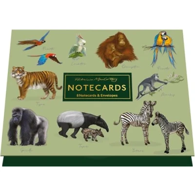 BEAUTIFUL DESIGN: Stay in touch in style with this charming notecard and envelope gift set featuring gorgeous jungle animal character artwork from wildlife illustrator Patricia MacCarthy. COMES WITH ENVELOPES: This gorgeous set comes with 8 notecards and envelopes in matching designs. The notecards are perfect for sending out invitations or thank you letters. TWO DESIGNS: The notecards feature jungle animal artwork, and the set comes with 8 notecards which feature two different designs. The notecards and envelopes come presented in a flip lid gifting box. PERFECT SIZE FOR POSTING: The notecards and matching character envelopes are the perfect size for posting short correspondence. MAKES A BEAUTIFUL GIFT: The charming artwork and premium design make this the perfect gift for fans nature artwork.