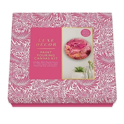 BEAUTIFUL ART CRAFT KIT: Awaken your inner artist and create your own artwork with this gorgeous paint pouring canvas kit. KIT INCLUDES EVERYTHING YOU NEED: The box contains 30cm round canvas, 4 x 36ml acrylic paints, 60ml measuring cup and full instructions. GREAT CREATIVE FUN: Let your imagination run free as you create your very own bespoke piece of artwork with this fun paint pouring kit. COMES IN GORGEOUS GIFTING BOX: This luxe décor paint pouring kit comes packaged in a gorgeous gift box, so it is ready for gifting. MINDFUL CRAFT PROJECT: Encourage mindful screen-free time with this creative art kit.