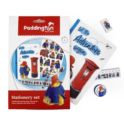 ALL-IN-ONE STATIONERY SET: This sweet Paddington stationery set includes everything young learners need, including A5 exercise book, pencil, ruler, eraser, sharpener and a sheet of fun colourful stickers. ADORABLE PADDINGTON DESIGN: Features colourful illustrations of the iconic Paddington Bear on all the items, from the book to the stickers, making it perfect for Paddington fans. CHILD-FRIENDLY & SAFE: Perfectly sized and designed for children aged 3 years and up, with easy-to-use components and materials suitable for little hands. IDEAL FOR SCHOOL OR HOME: Whether it's for classroom use, homework, or creative play at home, this stationery set keeps everything neatly stored in a decorative cardboard wallet. PERFECT GIFT FOR YOUNG FANS: A great gift for birthdays, and back-to-school, this is an essential set for little Paddington fans.