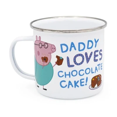 BELOVED CHARACTER: Showcasing official Peppa Pig artwork, this charming enamel mug captures the humour and warmth of Daddy Pig enjoying chocolate cake. STURDY ENAMEL: Crafted from durable, long-lasting enamel, this mug is lightweight, tough, and dishwasher safe for everyday convenience. HANDY SIZE: Holds 500ml, it's perfect for a generous cup of tea or coffee. Its practical size and lightweight design make it ideal for travel and outdoor use. PERFECT FOR DRINKS ON THE GO: Great for picnics, camping, or garden use, this enamel mug combines function with a fun design. MAKES A GORGEOUS GIFT: A thoughtful family gift for Dads and Peppa Pig fans alike. Perfect for birthdays, Father’s Day, or special treats.