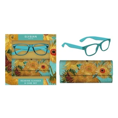 BEAUTIFUL DESIGN: Our stylish glasses case and reading glasses feature the beautiful and iconic Sunflowers artwork from Van Gogh. The case is designed with a soft interior and comes with a cleaning cloth making it the perfect gift. COMFORTABLE GLASSES: These stylish reading glasses are designed with rubberised frames to provide a comfortable grip and keep them in place, while high-quality sprung hinge arms are used to allow flexibility without breaking. MAKES A GREAT GIFT: This gorgeous Van Gogh Sunflowers reading glasses and case set makes a beautiful gift for fans of the iconic artist. The glasses are available in the standard prescription strengths of +2, +2.5 and +3 so you can choose the correct lens. STYLISH PROTECTION: The glasses case is designed to provide maximum protection for your glasses, and our cases are crafted from durable materials to withstand everyday wear and tear.
