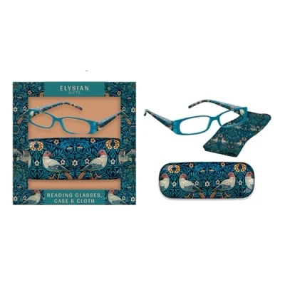 BEAUTIFUL DESIGN: Our stylish glasses case and reading glasses feature the beautiful and iconic Birds artwork from William Morris. The case is designed with a soft yellow interior and comes with a cleaning cloth making it the perfect gift. COMFORTABLE GLASSES: These stylish reading glasses are designed with rubberised frames to provide a comfortable grip and keep them in place, while high-quality sprung hinge arms are used to allow flexibility without breaking. MAKES A GREAT GIFT: This gorgeous William Morris Birds reading glasses and case set make a beautiful gift for fans of the iconic designer. The glasses are available in the standard prescription strengths of +2, +2.5 and +3 so you can choose the correct lens. STYLISH PROTECTION: The hard-shell glasses case is designed to provide maximum protection for your glasses, and our cases are crafted from durable materials to withstand everyday wear and tear.