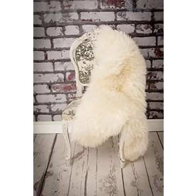 Robert's Rugs Genuine Sheepskin Rug White Cream 110 115 cm for Living Room Soft Throw Bedroom Carpet Thick Wool Fluffy Floor