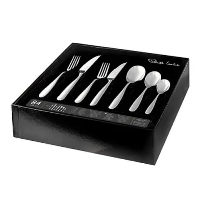 This Robert Welch Stanton Bright 84 Piece Cutlery Set is presented in an attractive gift box. The 12 person set consists of 12 table knives, 12 table forks, 12 soup spoons, 12 side knives, 12 side forks, 12 dessert spoons and 12 English tea spoons. Each piece has a mirror-polished finish and is manufactured from the finest quality 18/10 stainless steel. Part of the Robert Welch Stanton Bright cutlery range noted for its well-balanced and sculpted design which is comfortable to hold and use. Table knife length: 23.3cm. Table fork length: 20.1cm. Soup spoon length: 19.6cm. Side knife length: 22cm. Side fork length: 18.1cm. Dessert spoon length: 17.6cm. English tea spoon length: 14.1cm. Dishwasher safe and supplied with a Robert Welch 25 year guarantee.  Knives are not for sale to persons under the age of 18. - all knives and bladed products are delivered by Age Verified Delivery (AVD). The carrier may request proof of age in order to deliver your parcel. If proof of age is not available, or the recipient is underage, the carrier will refuse to deliver.