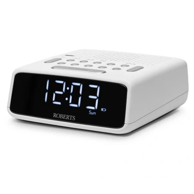 - You'll be spoilt for choice with the range of FM stations on this Roberts radio - The large, easy-to-read, dimmable LED display makes it ideal for your bedside table - Its radio or buzz alarms helps you drag yourself out of bed in time - Need a few more minutes? Hit the Snooze button and relax a little longer - Save up to 5 presets and jump straight to your favourite stations