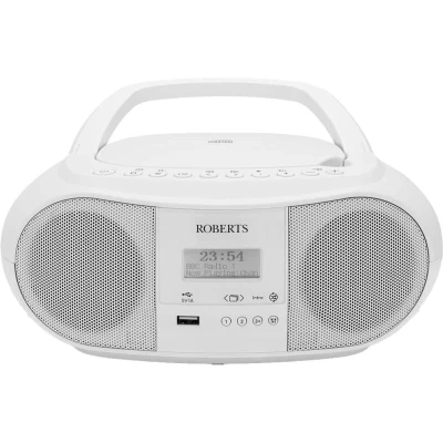 - Enjoy 60 preset DAB+, DAB and FM radio stations with this Roberts Boombox - Its Bluetooth connectivity lets you stream your music from your phone - There's a CD player, so you can revive your old favourite CD collection and enjoy the hits all over again - Find your favourite radio stations on the easy-to-read LCD display - Its carry handle and compact design lets you take it anywhere you go - perfect for camping trips