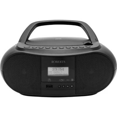 - Enjoy 60 preset DAB+, DAB and FM radio stations with this Roberts Boombox - Its Bluetooth connectivity lets you stream your music from your phone - There's a CD player, so you can revive your old favourite CD collection and enjoy the hits all over again - Find your favourite radio stations on the easy-to-read LCD display - Its carry handle and compact design lets you take it anywhere you go - perfect for camping trips