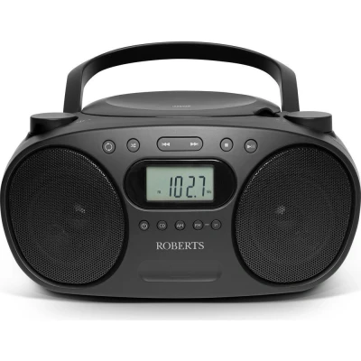 - Enjoy your favourite FM and AM radio stations with this Roberts Boombox - There's a CD player, so you can revive your CD collection and enjoy the hits all over again - Its LCD display lets you know which station you're on and what time it is - You can take it anywhere you go with its carry handle