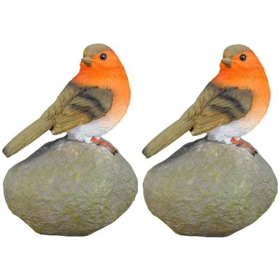 Robin on a Stone Resin Garden Ornaments (Set of 2)