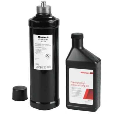 Rotary Filter Maintenance Kit, 34724 Includes a quick change filter dryer and a 16 ounce bottle of premium high vacuum pump oil. Tested quality for minimal content Excellent cold properties for easier starting Chemically engineered to maintain viscosity at higher operating temperatures, Weight: 0.3 Pounds, Manufacturer: Robinair