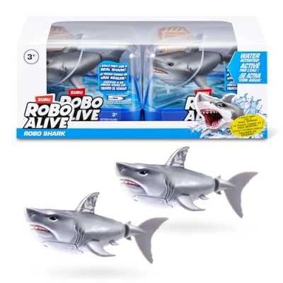 ZURU ROBO SHARK: Drop your Robo Shark in water and watch it come to life with ZURU’s advanced water activated technology! Perfect for kids 3+, tweens & teens. REALISTIC SWIMMING ACTION: Moves like a real shark, swimming in 5 directions and diving up to 6ft, for bath play or pool fun. COLLECT THEM ALL: 3 Robo Sharks available with unique lifelike designs—build your mini underwater world. FUN INDOORS & OUTDOORS: Ideal for bath time, water tables, or pools, plus role play, pretend play, and silly pranks. Prank your friends with the ultra-realistic technology of Robo Shark! Put your Robo Shark in a water jug to give your family the fright of their life! READY TO PLAY: Powered by water-activated robo technology, each shark comes battery-ready for endless swimming fun.., Manufacturer: ZURU