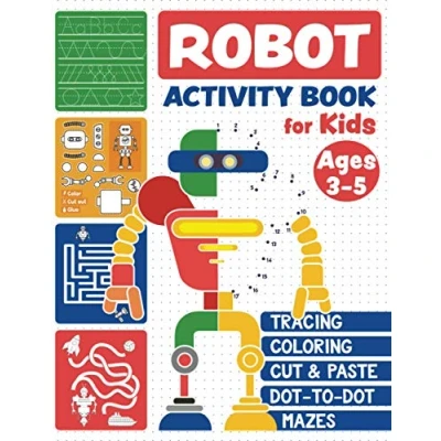 Robot Activity Book: Tracing Skills, Coloring, Cut and Paste, Dot to Mazes for Kids Ages 3 5