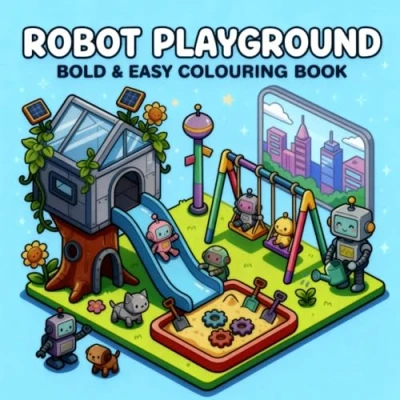 Robot Playground: Bold and Easy Coloring Book: Cute Cozy Kawaii Robots with Thick Black Outlines Simple, Relaxing, Fun Pages for Kids, Toddlers Adults