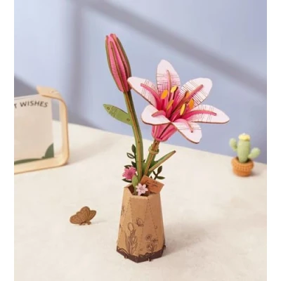 ROBOTIME 3D Wooden Flowers Puzzle Pink Lily, Artificial Bloom Jigsaw, Model Kits for Adults to Build, DIY Craft Set, Valentine's Day, Mother's Day and Christmas