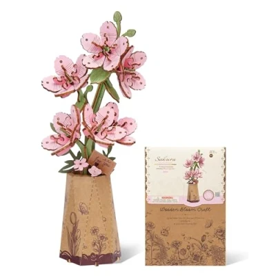 ROBOTIME 3D Wooden Flowers Puzzle Sakura, Artificial Bloom Jigsaw, Model Kits for Adults to Build, DIY Craft Set, Valentine's Day, Mother's Day and Christmas