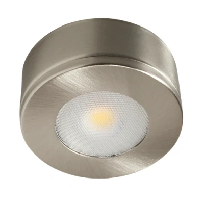 AmazonRobus RCD2P540-13 Commodore brushed chrome round LED cabinet light provides an excellent replacement for traditional 20W G4 Halogen lamp fittings. Powered by mains voltage supply with integrated driver and supplied with 1m supply cable. It not only looks superb, but offers the extended operation times and maintenance free usage expected from LED fittings. Pressed stainless steel housing with polycarbonate diffuser delivers no UV or infrared light allowing its suitability for sensitive display items . Suitable for use in cabinet displays, under or on top of wall cabinets, kitchen kick boards, bedroom wardrobes, reception desk lighting. Dimensions H32 W71mm