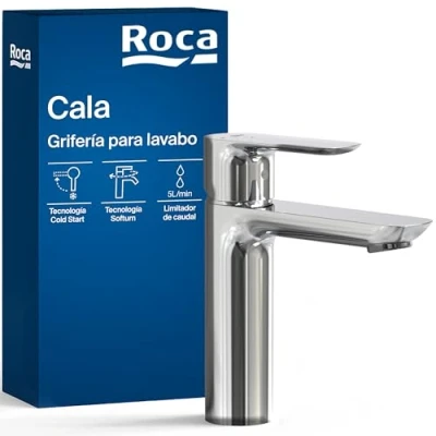 Aesthetic and functional - Softurn technology of this bathroom faucet brings a high level of precision and smoothness to the handle handling to control the flow rate and temperature of the water ENERGY SAVING - In these cold start technology bathroom sink faucets, the front opening is reserved for cold water only, preventing unintentional boiler activation PERMANENT SHINE - Evershine electrolytic coating of this basin faucet ensures a permanent shine, reduces limescale deposits and protects against corrosion and scratches Easy installation - Thanks to the included flexible power links, the assembly of this Roca basin tap from the Cala collection can be done quickly and easily Cala Collection - A slender design, formed by a stylized cylindrical body of just 38 mm and a rectangular flat hand, in perfect harmony with the shape of the spout, Weight: 4.40924524 pounds, Manufacturer: Roca