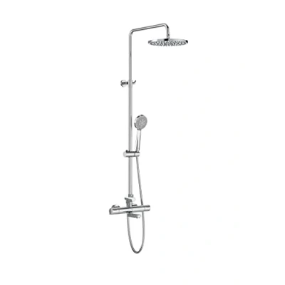 Thermostatic column for shower bath with height adjustment from 1295 mm to 1670 mm Includes spray head diameter 245 mm Hand shower diameter 100 mm with 3 functions Flexible metal 1.7 m and spray pipe kit Suitable for: bathtub, Manufacturer: ROCA