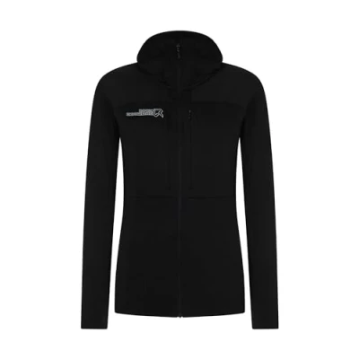 REWC02611;TELLER HOODIE WOMAN FLEECE;Women;SWEATSHIRT;94 PercentPOLYESTER 6 PercentELASTANE;Zip;Synthetic Merino wool improves thermoregulation while the polyester fabric has a grid structure that retains body heat and at the same time wicks away moisture Merino wool improves thermoregulation while the polyester fabric features a grid structure that retains body heat while at the same time wicks away moisture The hood and bottom of the sweatshirt are finished with lycra tape to ensure a snug fit without restrictions Versatile and technical garment, ideal for outdoor activities, especially during intense physical activities where thermoregulation and comfort are essential for optimal performance