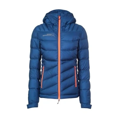 Drawstring at the bottom of the garment for a secure and comfortable fit. Two-way adjustable hood for extra protection Cross stitch quilt construction for a sturdy and durable construction Adjustable cuffs suitable for use with winter gloves 90/10 750 FP hydrophobic treated down filling for high heat even in wet conditions.