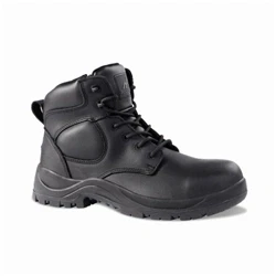 Water repellent full grain Black leather with no. 8 ykk side Zip Protective fiberglass toecap and composite anti-penetration flexi-midsole Activ-tex waterproof and Breathable bootie membrane - Tested for 8 hours (6 times longer than EN requirement) force10 dual density PU nitrile rubber outsole - Tested to extraordinary abrasion, heat and cold performance levels Activ-step PU anti-fatigue comfort footbed Specification: EN ISO 20345:2011 S3 HI CI HRO WR SRC