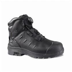 Constructed from 100% non-metallic materials, the Lava boots boast a protective toecap, midsole, and internal metatarsal guard. They are engineered using specialist durability materials, including FORCE10 components and a Moisture-tech by Sympatex waterproof membrane. The Impact Shield and Boa fit system further enhance their performance. The upper materials consist of water-repellent full-grain black leather, while the internal lining ensures breathability and waterproofing, tested for an impressive 100 hours—74 times longer than the standard requirement.