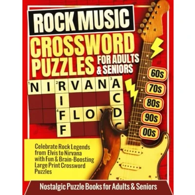 Rock Music Crossword Puzzles for Adults & Seniors: Celebrate Legends from the 1950s to 2000s with Fun Brain Boosting Large Print ... (Nostalgic Puzzle Books Seniors)