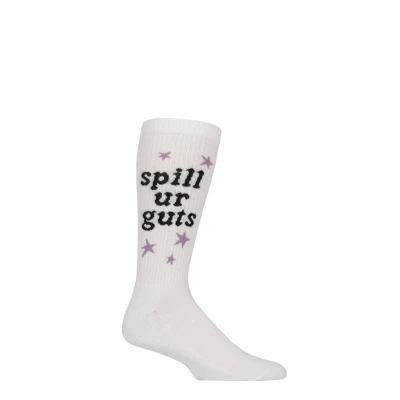 With her 2023 ‘Guts’ album, Olivia Rodrigo had an international number one in ‘Vampire’, and with these SOCKSHOP Music Collection Olivia Rodrigo Spill Ur Guts Cotton Socks, you can show that you’re a fan of her infectious alternative pop-rock! The socks are are a sports crew style, made in white, featuring a woven 'Spill Ur Guts' design on a ribbed leg. They are soft, breathable and cotton rich, with terry loop knitted cushioning in the feet for added comfort and absorbency.