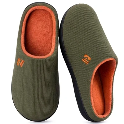 RockDove Men's Original Two Tone Memory Foam Slipper, Size 10/11 UK Men, Army Green and Tangerine