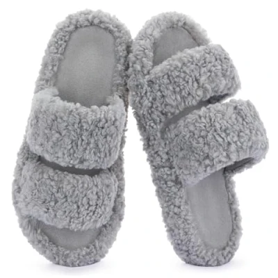 RockDove Women’s Pluffie Slippers with Arch Support & Memory Foam, Cozy Faux Fur Open Toe House Shoes, Gift Ready Indoor Outdoor Comfort, Size 7/8 UK Women, Light Grey