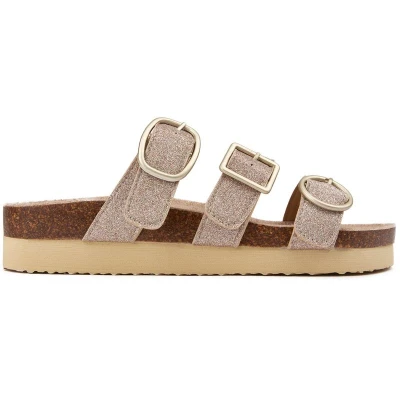Secret SalesWomens gold Rocket Dog astor sandals, manufactured with synthetic and a rubber sole. Featuring: triple strap, cushioned insole, cork mid-sole and rocket dog branding.
