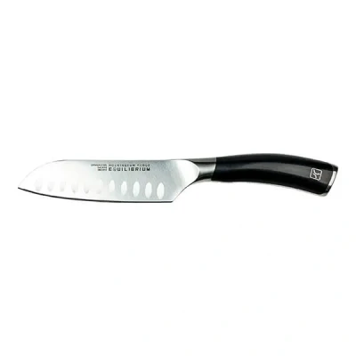 This Rockingham Forge 13cm Equilibrium Santoku Knife is a Japanese version of a chef's knife, it is a flexible knife that can be used for a number of kitchen tasks including slicing, dicing and mincing.Equilibrium blades are made from high quality German chromium-molybdenum-vanadium steel, which is ice-hardened for lasting sharpness and rust resistance.The handles are made from black POM material in a curved design which provides a perfect and comfortable grip, weighted by the through-tang steel construction. The highlight of the Equilibrium range is the perfect balance of the knives which sit comfortably in the hand, encouraging a professional 'rocking' cutting action.  Knives are not for sale to persons under the age of 18. - all knives and bladed products are delivered by Age Verified Delivery (AVD). The carrier may request proof of age in order to deliver your parcel. If proof of age is not available, or the recipient is underage, the carrier will refuse to deliver.