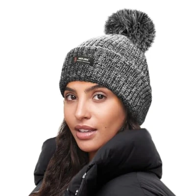 RockJock R40 Thermal Insulation Ladies Marl Melange Bobble Hat with Fleece Lining Grey