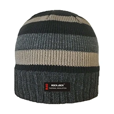 ROCKJOCK Striped Knitted Fleece Lined Beanie HAT with R40 Thermal Insulation
